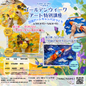 Message~アートの基本は人と比べないこと。人との競争に惑わされず、自分に集中し目標を達成する力は、どんな分野においても最も大切な能力です。自分自身、幼少期からアートに触れ、刺激を受け、自分って何だろうと模索した経験が、どんな場所でも生きていける強さを与えてくれたと信じています。多くの子どもたちがアートで心を開放し、力強さを身に付け、希望の未来へ進んでいって欲しい!挑戦する心を常に持ち、日々新鮮な経験を届けられるアート教室を目指しています。