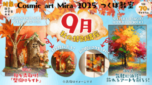 今年のCosmic art Miraがご提供するのは、2種類の特別講座!「秋🍂」や「光💡」をテーマにしたアート作品制作です。