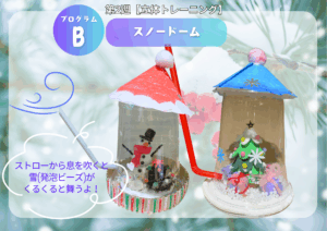 透明カップを逆さにして小さな“冬の世界”を作ります。ストローを吹くと中に雪が舞い上がる楽しいギミック!