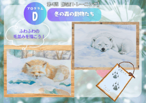 冬の森の動物を観察して描く絵画トレーニング。写真資料を使って観察体験。形や毛の質感を理解し、視覚的な冬の自然を学びます!